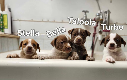 4 pups -- Stella, Bella, Taloola, Turbo -- Heeler mix, boys and girls about 8 weeks old. ready for new homes.