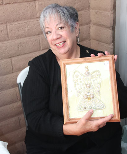Lupe Lindsey and Carlos Bueno with Lupe's jewelry and fabric items