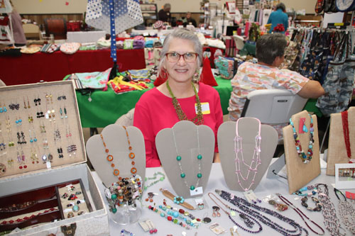 Tara O'Neill with her copper- and silver-wired gemstone jewelry