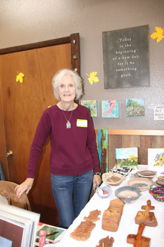 Ann Alexander with her clay, gourd and wood whimsical creations