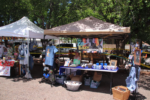 Vendors on the shaded parking area
