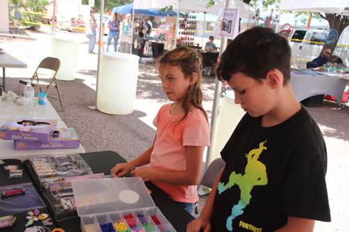 Ellie Young and Tristan Young working with beads