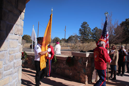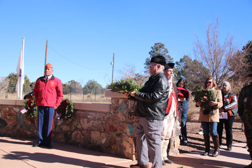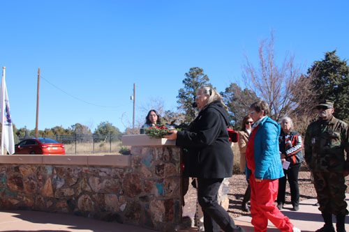 Doug Dinwiddie presents the wreath for the soldiers, officers and enlisted, that served at Fort Bayard