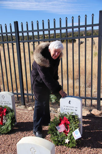 She places the Army Wreath at Aaron's grave marker